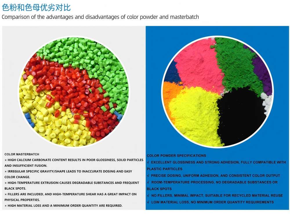 1. Thiết kế mô-đun: Cho phép thay đổi màu nhanh chóng trong 5 phút; Có thể đổ đầy vật liệu bổ sung; Tương thích với cả bột màu và hạt màu, cho phép sử dụng đa mục đích trong một máy.